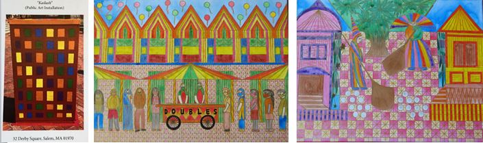 She recently returned from Ubud, Bali, Indonesia where she was “Artist-in-Residence”. Indra has two main collections: “Festivals & Folklore of Trinidad, West Indies” and “My Journey to Morocco” She is also is a regular Contributing Artist to the Rotunda Gallery (in the Parliament Building, Port of Spain, Trinidad, West Indies). She most recently attended (SIFA 2023) the Singapore International Festival of Arts. Internationally her works can be found at the Mauser Eco House, Parrita, Costa Rica, where she painted a 6 x 6 foot mural on their entrance wall and she has public art projects in Salem, Massachusetts as well.