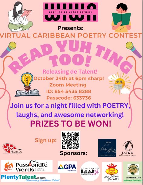 For the second time running “Read Yuh TingToo” Poetry Contest was hosted by the West Indian Women Network (WIWN) and PlentyTalent.com This edition saw 9 contestants from, Jamaica, the Virgin Islands, and Trinidad and Tobago. Once again the standard of delivery was very high proving the art form of poetry in the Caribbean is in afreat place.